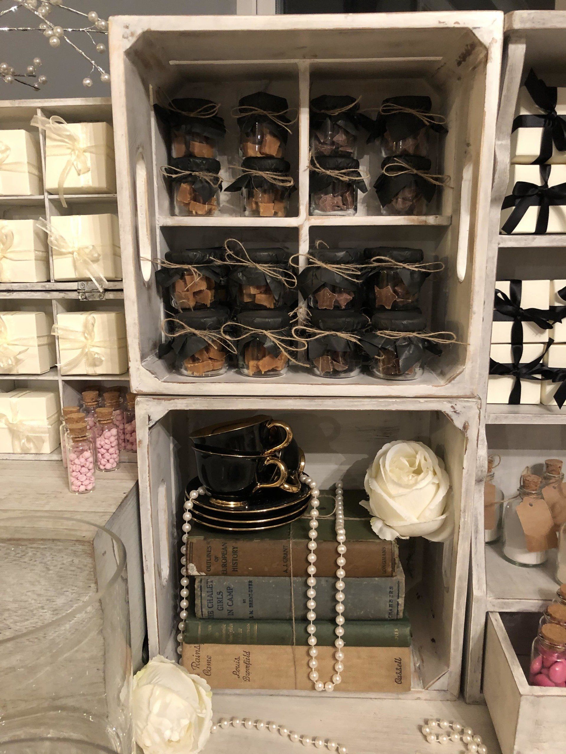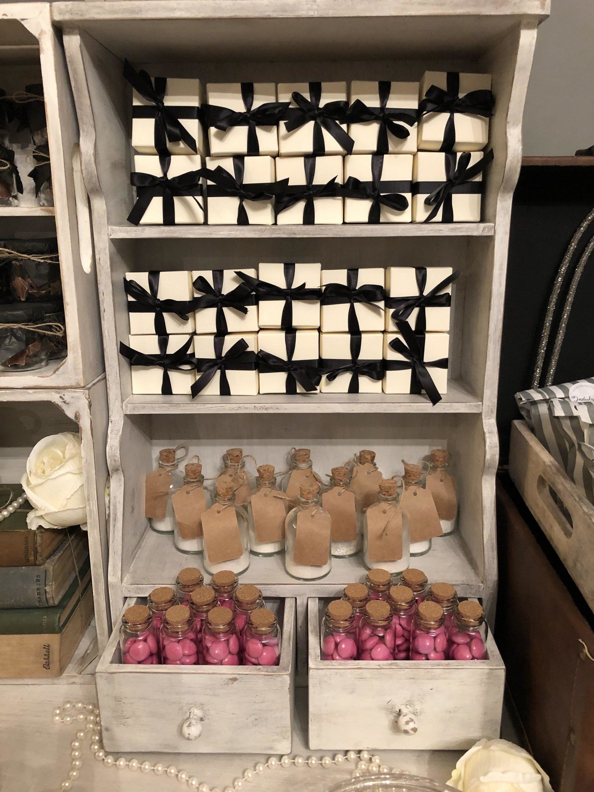 3. Or your guests might decide on one of the beautiful favour boxes, bags and glass bottles that people can take home and enjoy another day.